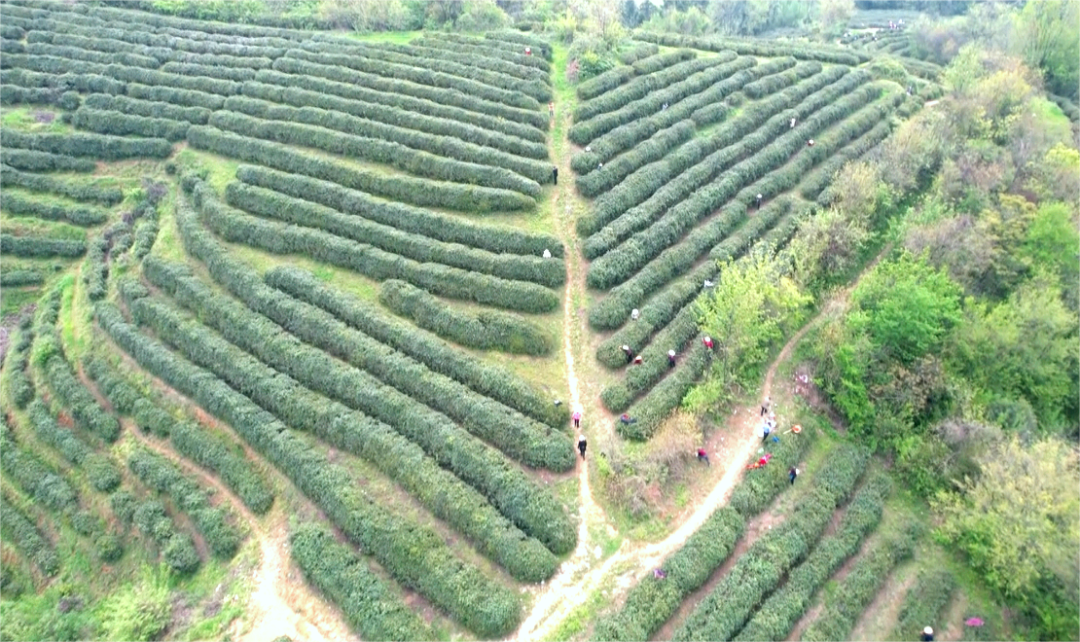 漫山遍野的茶树随着山势绵延起伏,