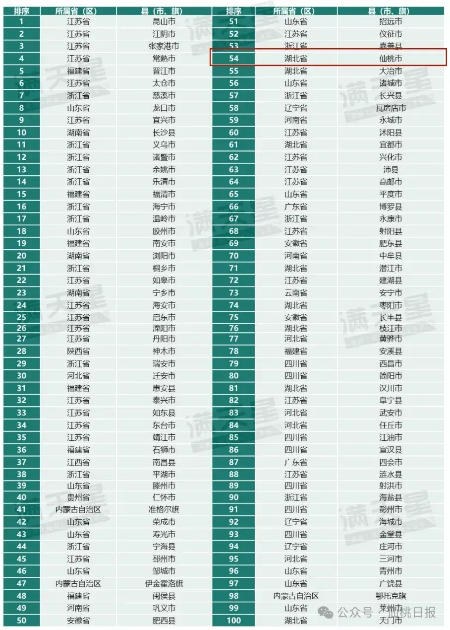 自2017年重返“百强”后,仙桃连续8年全国县域经济百强争先进位,连续4年位列全省首位,居全国第54位,位列中国县域发展潜力百强第22位、中国县域新质生产力综合指数百强第57位、全国县域投资竞争力百强第78位,县域百强的质效更优。