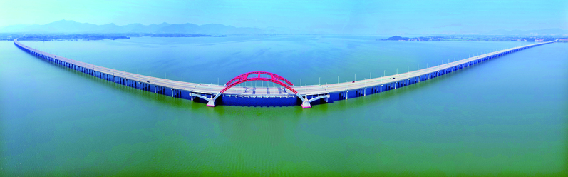 黄阳公路上的大冶湖特大桥,是湖两岸发展的纽带