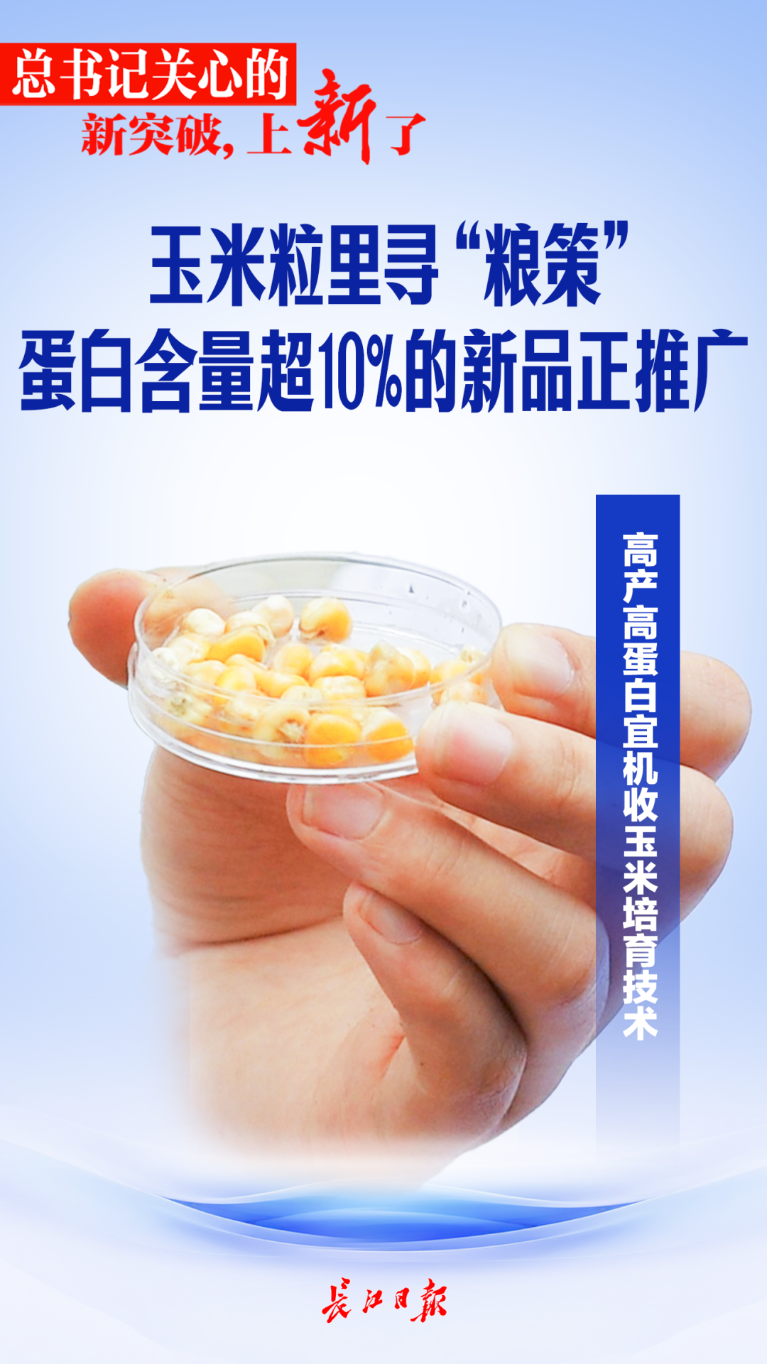 2024年11月5日下午,总书记到武汉产业创新发展研究院考察。在“高产高蛋白宜机收玉米”成果展台前,严建兵报告,团队实现玉米蛋白含量从8%到12%的跃升。总书记充分肯定,指出“这个研究很重要,提供了一条新的路子”。