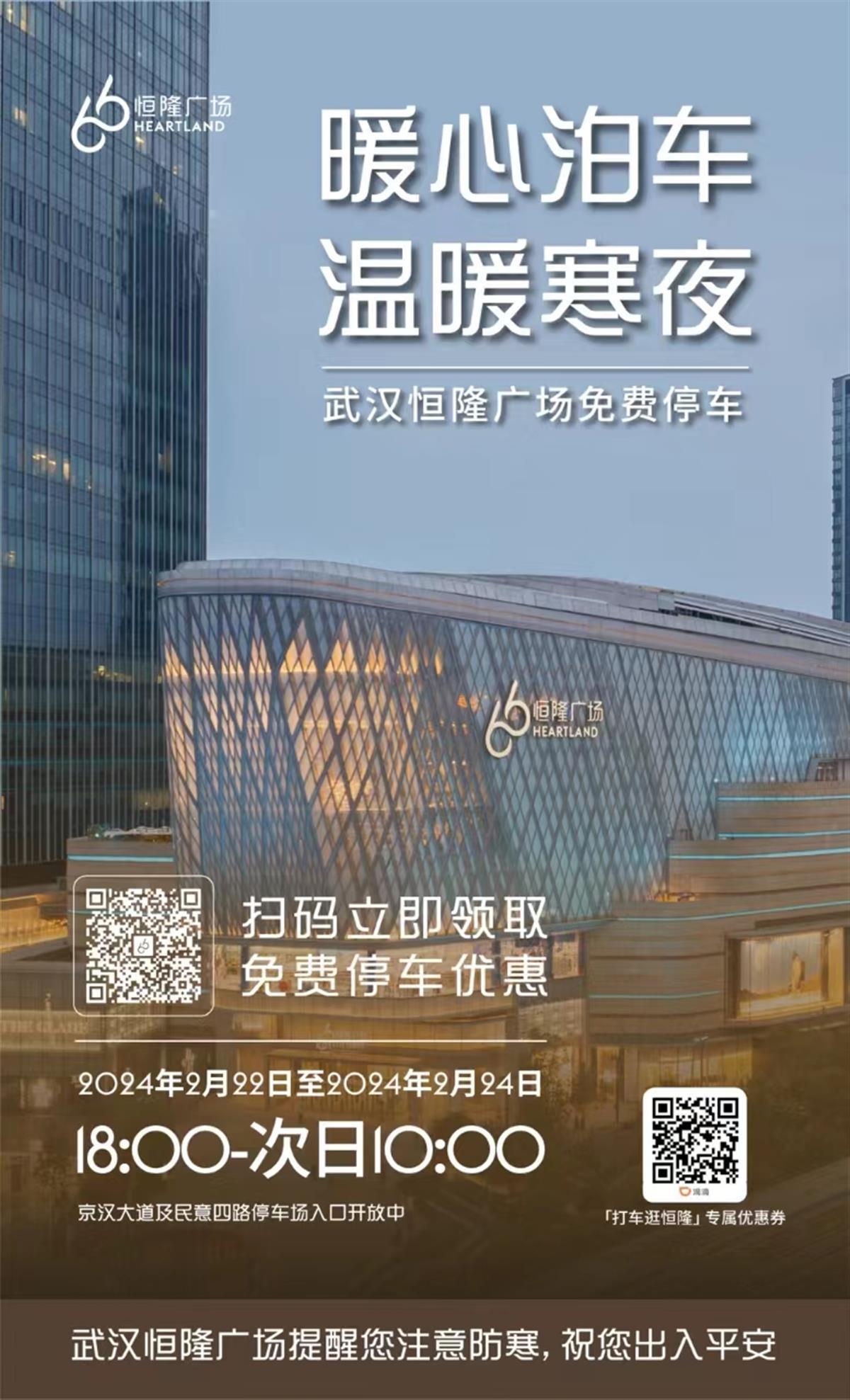 武汉恒隆广场2月22日-24日期间,每天18:00至次日10:00,开放地下停车场2700余个车位,供市民免费停车。