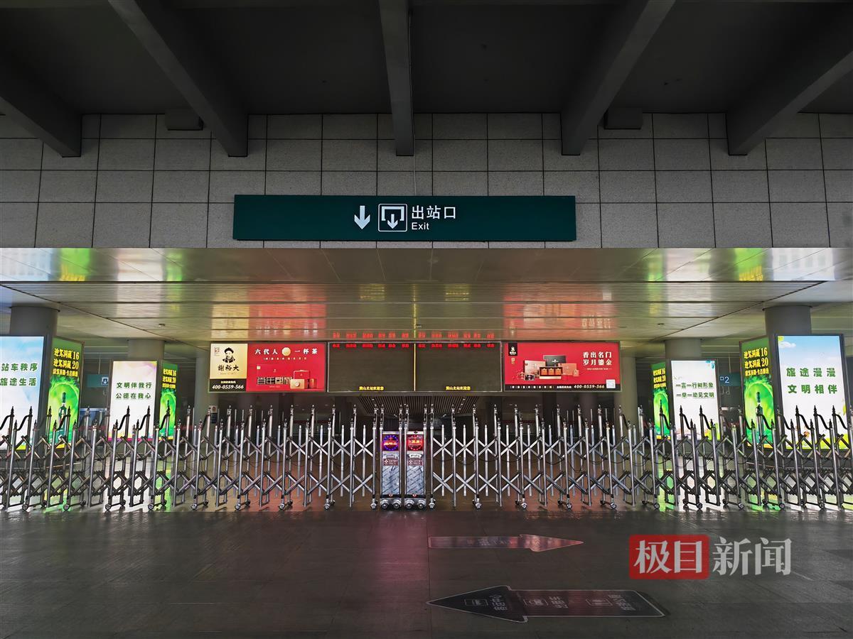 26日下午,极目新闻记者在黄山北站看到,2层的进站口已经封闭,四名车站的工作人员坐在出口处,提醒记者列车已经停运。记者在现场看到,候车大厅内已空无一人。在一层出站口,电动大门也紧紧关闭,附近除了保洁人员几乎看不到其他人,两家餐厅都开着门但没有顾客。