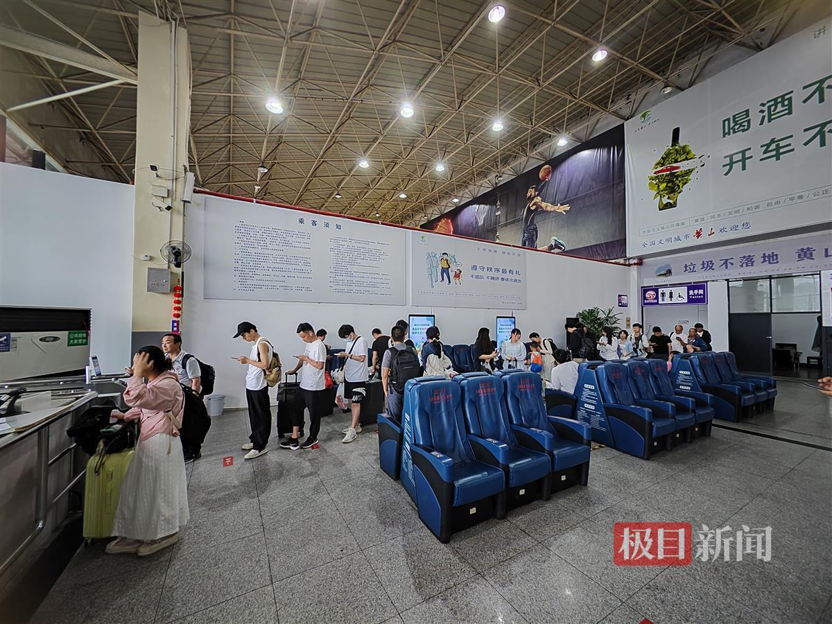 列车停运后,许多旅客选择到汽车站乘车出行。26日下午2时50分许,极目新闻记者来到黄山市汽车客运总站,在候车大厅内,记者看到有几十名旅客正在候车。来自湖北十堰的旅客陈先生向极目新闻记者介绍,他是做隧道施工的,来黄山市工作已经3个月了,他原计划6月25日离开黄山市,但当天黄山北站所有列车停运,为此,他只能先乘汽车到合肥,再从合肥乘坐火车返回十堰。