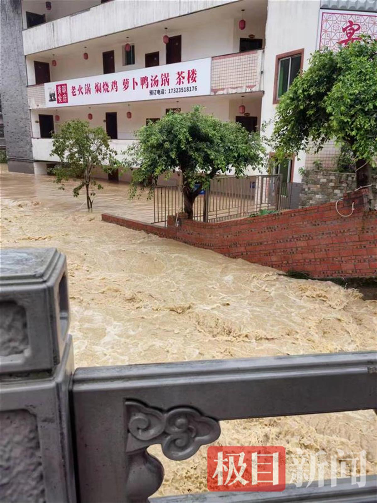 澄溪镇一河流漫过堤坝淹了临河餐馆(受访者供图)