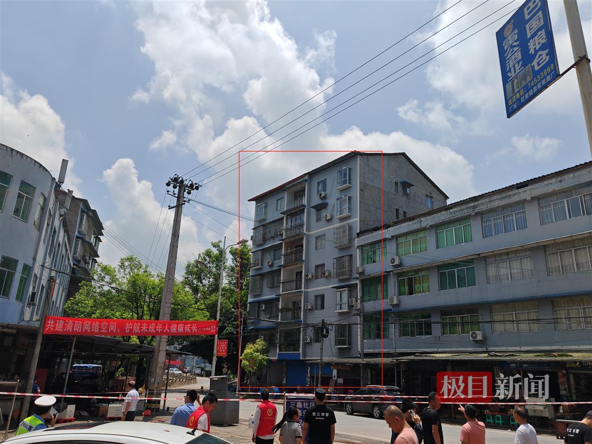 杠家镇一七层楼房出现险情,附近拉起警戒线(来源:极目新闻记者杜光然摄)