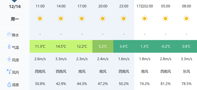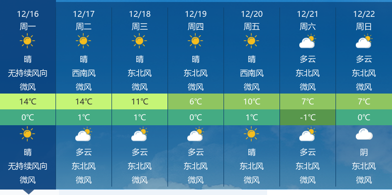 未来三天,天门将持续晴朗天气,但夜间多云。具体来看,12月17日至12月19日,最高气温分别为14℃、11℃、6℃,最低气温均为1℃左右,微风。建议市民朋友早晚外出时注意增添衣物,防止温差过大引起不适。