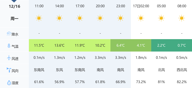明日襄阳天气将继续晴朗,白天微风,夜晚天气转为多云,微风。最高气温11℃,最低气温1℃。