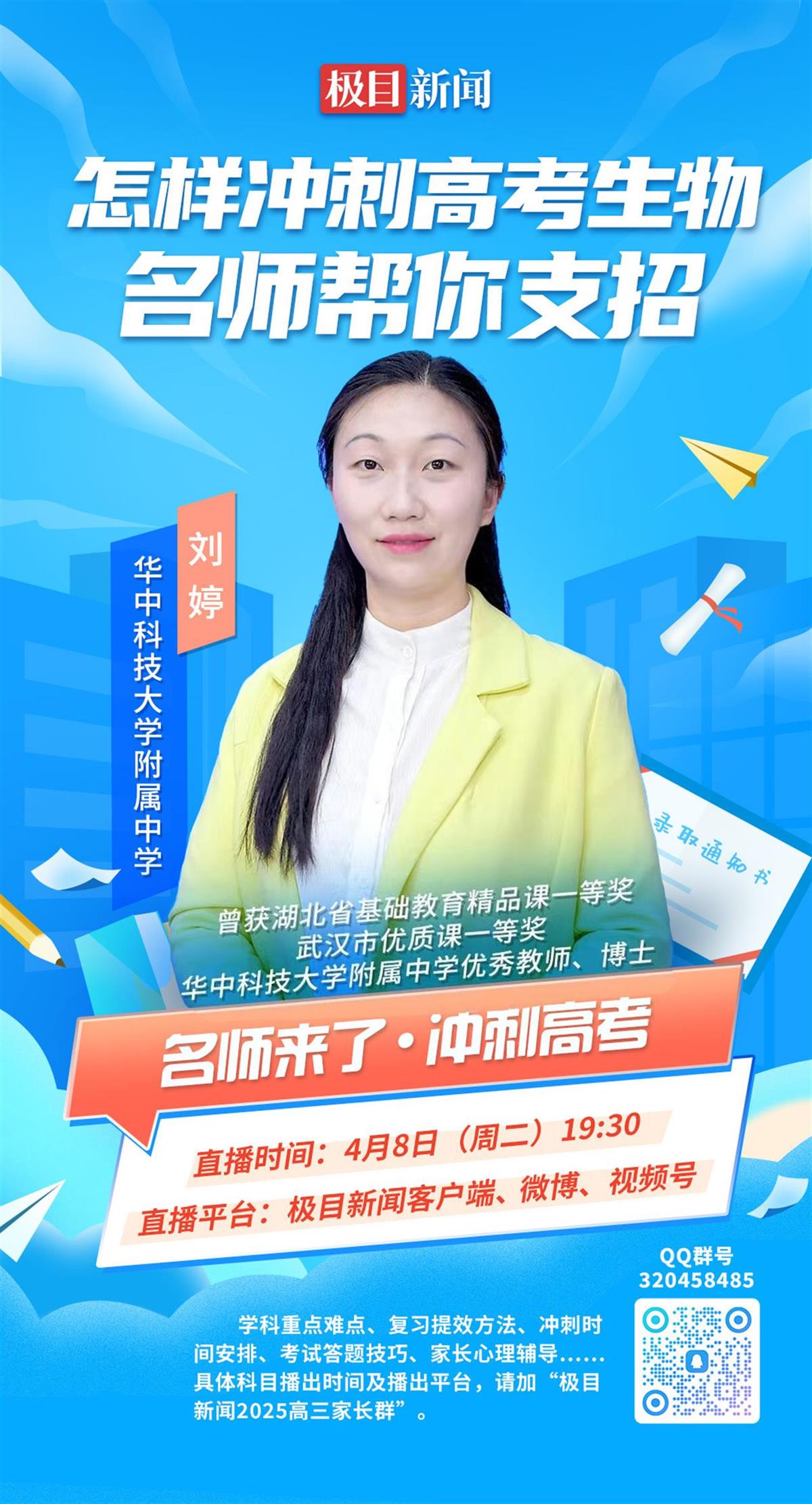 2025年高考越来越近了,在最后的冲刺阶段,各学科应该怎样有针对性地复习?如何高效抢抓得分点?高考命题有哪些新变化?为了帮助广大考生更好地进行冲刺复习,楚天都市报·极目新闻特别邀请了十余位资深教师、学科带头人,就每一学科的冲刺复习进行直播讲解。